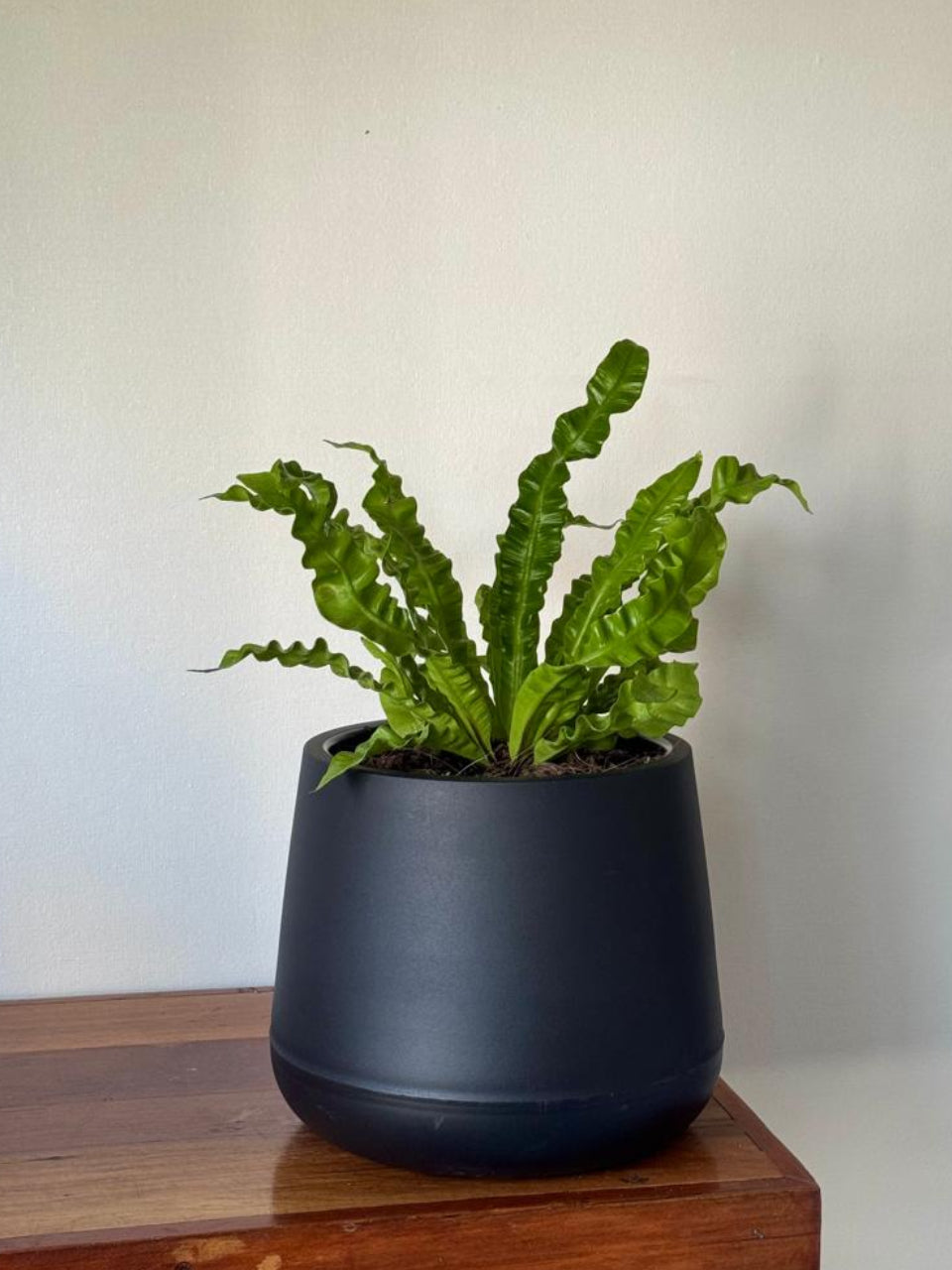 🌿 Helecho Crispy Wave en macetero elegante negro opado